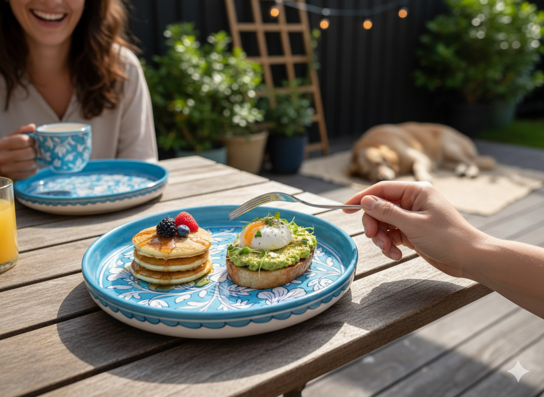 10 Inch Ceramic Plates – Handcrafted Blue Pottery Dinner Plates | Round Shape Indian Artisanal Tableware