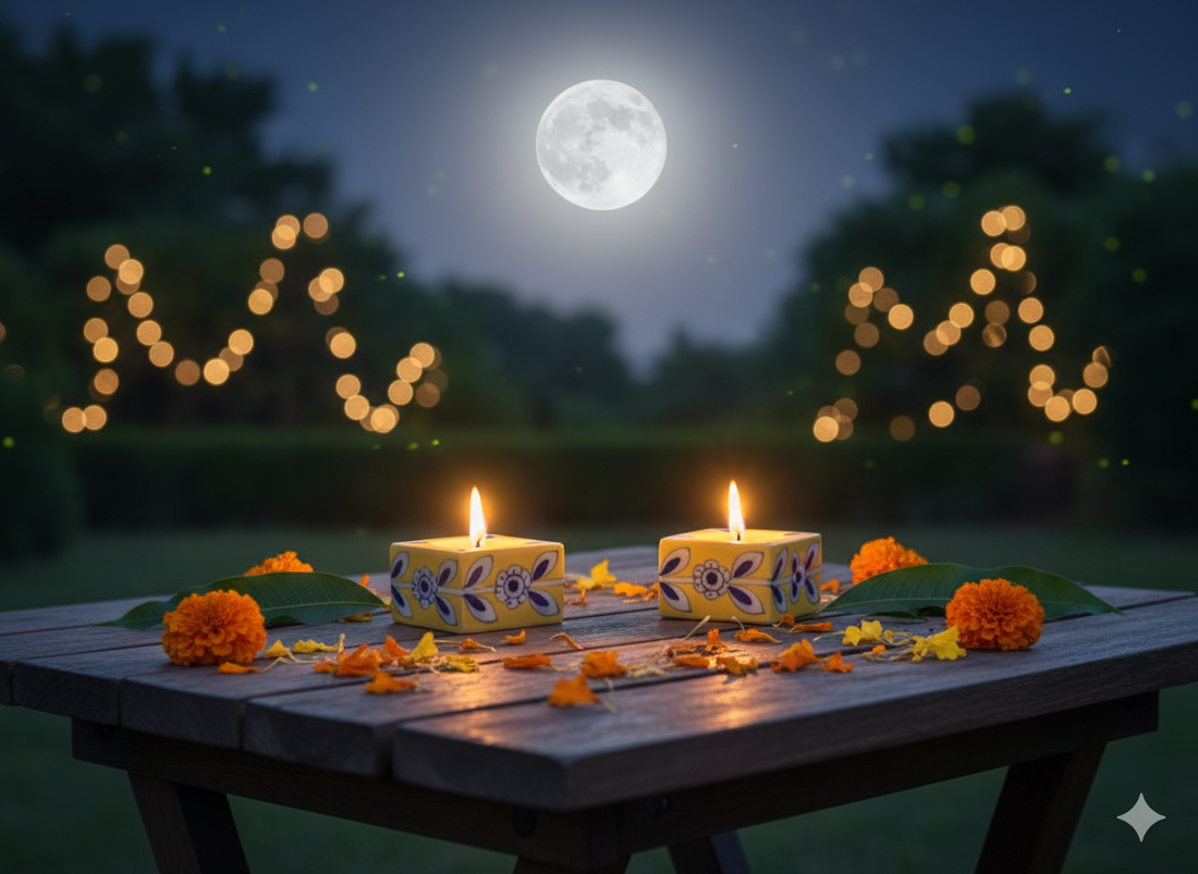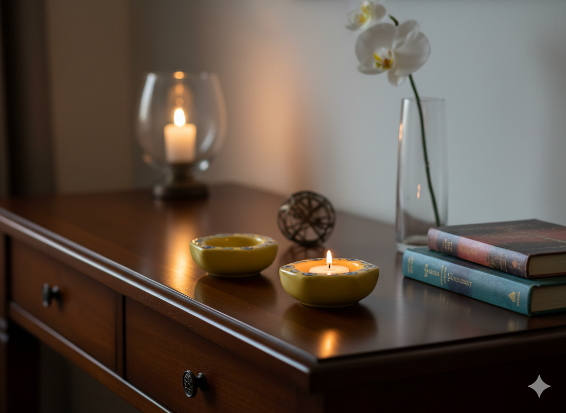 Hand-Painted Ceramic Diya Tealight Holders (Set of 2) - Floral Petal Shaped Votive Candles for Diwali Decoration, Puja & Festive Home Decor - Traditional Indian Art.
