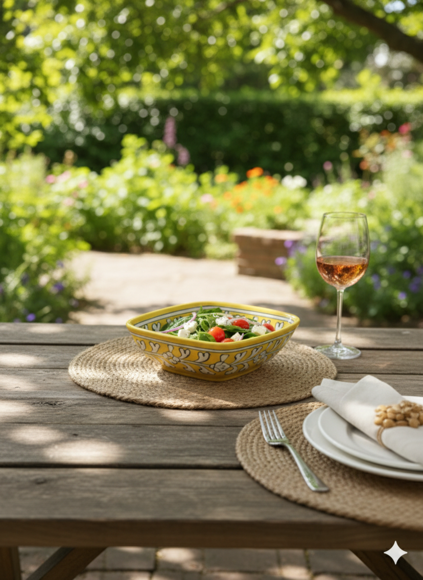 Hand-Painted Yellow Jaipur Blue Pottery Bowl (6-Inch) - Artisan Ceramic Snack & Decorative Wall Plate - A Piece of Indian Heritage.