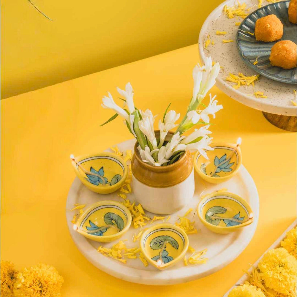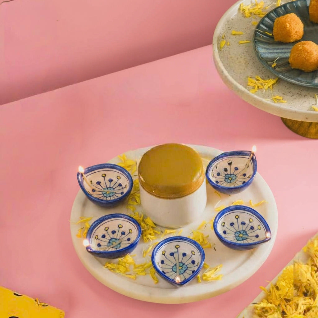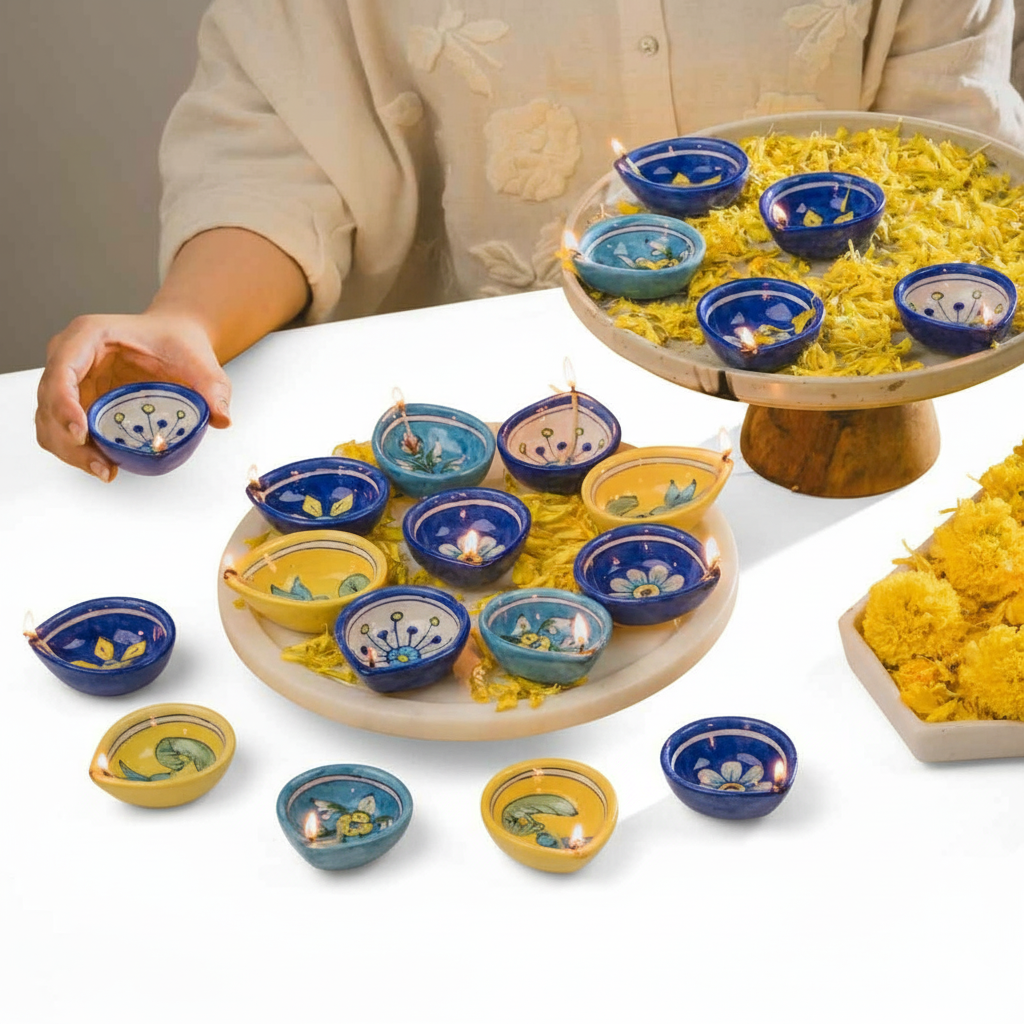 Add charm to your home décor with this hand-painted blue pottery diya – a timeless craft from Rajasthan artisans.