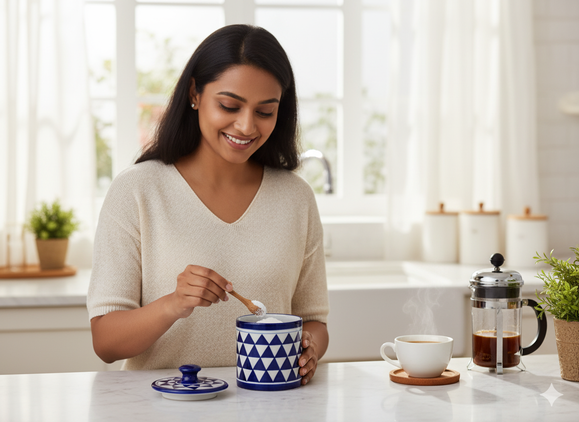 ✔ VERSATILE & MULTIPURPOSE (4-Inch): This charming small jar is incredibly versatile. It is perfect for your kitchen countertop to store spices (masala), salt, sugar, tea bags, or dry fruits. It's also ideal as a serving pot for pickles (achar), chutneys, or mouth fresheners (mukhwas) on your dining table.